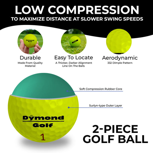 Dymond Golf Senior Golf Ball - One Dozen (High Visibility Yellow)